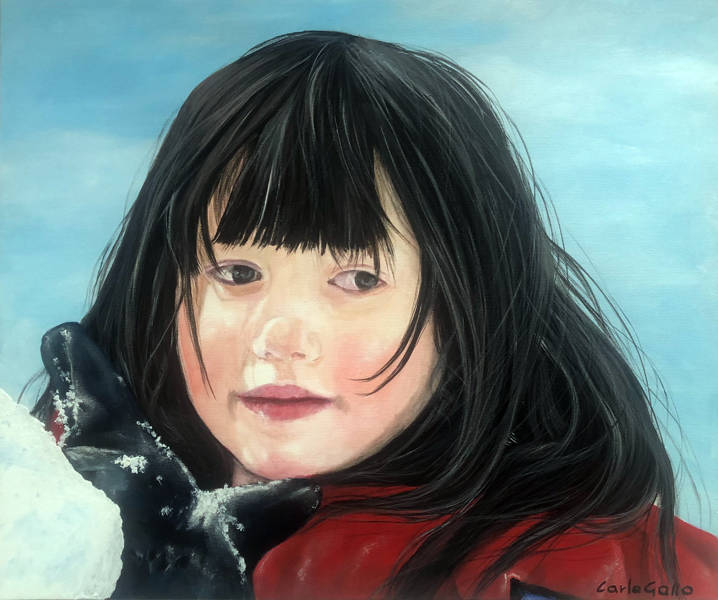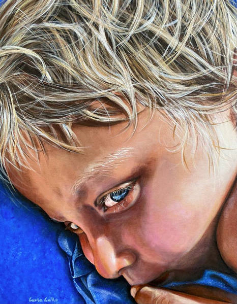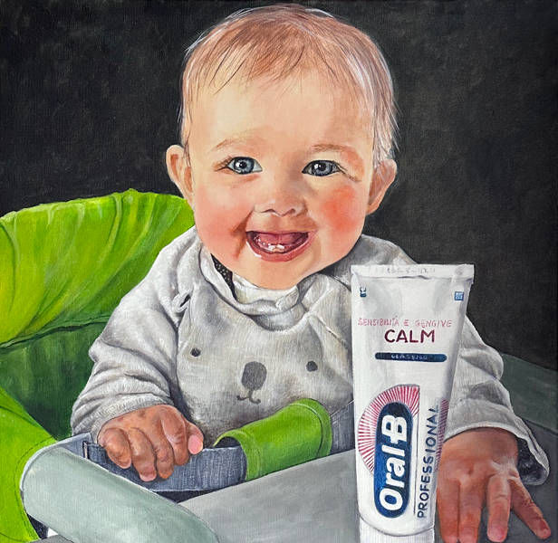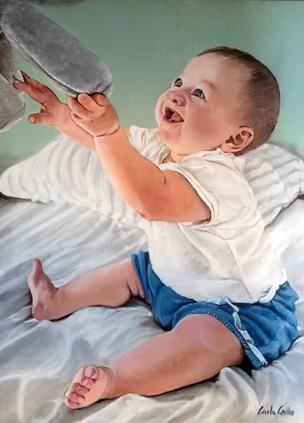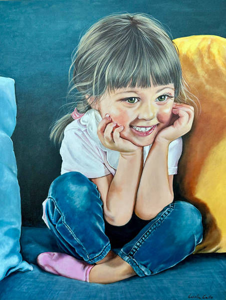 Questa galleria raccoglie le fotografie originali affidatele dai clienti, accanto ai ritratti dipinti che ne sono nati. È la testimonianza del suo meticoloso lavoro di interpretazione pittorica, dove ogni sguardo viene colto nella sua profondità psicologica e ogni dettaglio viene restituito con la vibrante sensibilità della pittura figurativa.